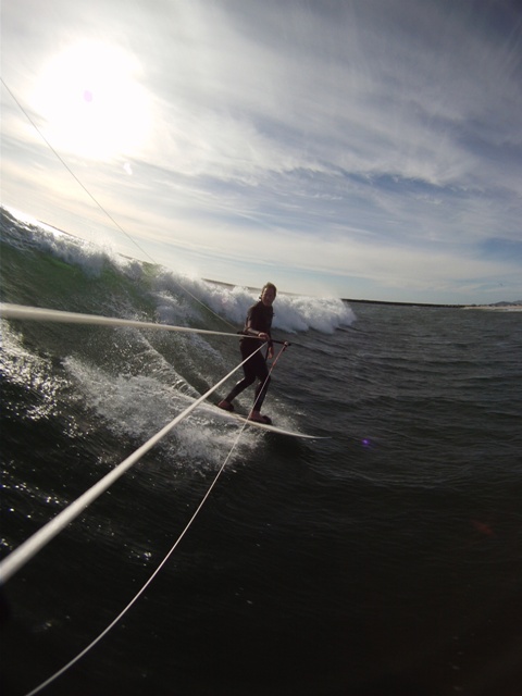 The end of May was really good yesterday at the coast. Warm air and water, steady 10m wind, 6 ft at 12 second strong west swell, tide was just right and it seemed like the planets just aligned for the afternoon kitesurfing session of the month. Got to the beach after work and the place looks like a ghost town with no one anywhere and flawless rights and lefts were reeling up and down the beach. PJ eventually showed up the share the session with me. Was planning on shooting GoPro for the whole session, but right when I was ready to attach the camera mount to the lines I realized I had forgotten to install the anti-moisture strips in the housing. I said screw it and left the camera on shore and went out and kited for an hour and a half of some of the best waves I have had in a long time. Finally convinced myself that I had to get a few shots so went in for drinking water and installed a strip in the housing and went back out. What follows is just some the last portion of a perfect day.