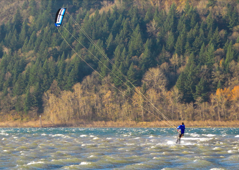 In that shot, Airon's chicken loop accidentally popped off... The 2m Ocean Rodeo Rise is on normal length lines, and Dern is just water-starting to come back to shore (that's why he's lying back in the water). The big boost Dern did was on a 5m.... Dern & JJ did only a couple of reaches each on the 2m, just to see if it could work. They had to constantly work the kite... JJ did a downloop to complete his jibe on his strapless directional... the kite moved so fast you almost couldn't keep track of it.