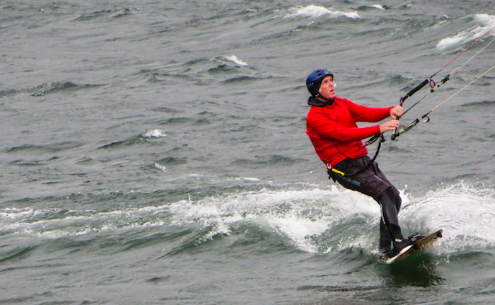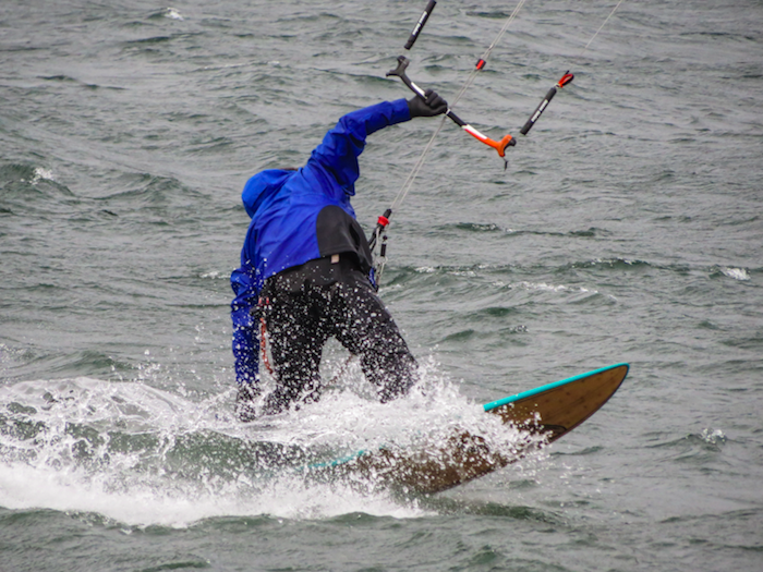 | Had to get out to ride my new John Bellacera board. Rufus at noon to 1 was powered 7m with nice swell. Perfect to test ride the new shape. We worked together to come up with this unique design, surfboard twin. Turns GREAT and very smooth ride. A little work needed to ride tail first but after some practice it works great. I wanted a board I could ride in the surf that I didn't have to jibe right before a nice wave pops up. As I'm a regular foot I'd be going out with left foot back and now can spin the board around quickly and grab that nice wave! It's 5'2" x 17 1/2". Rides more like a 5'6" with it's full shape and moderate concave. Great job John! Another winner!
