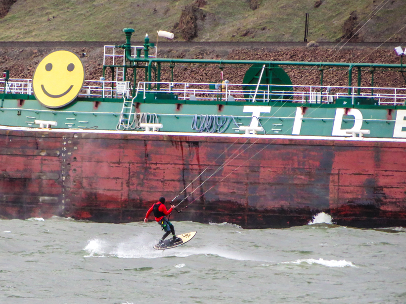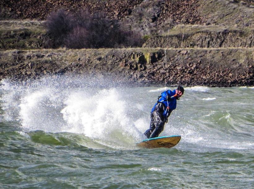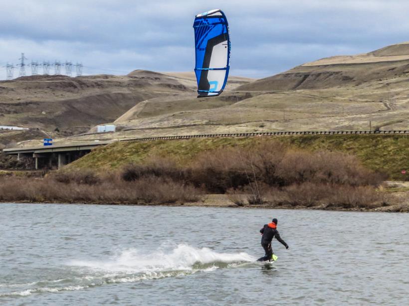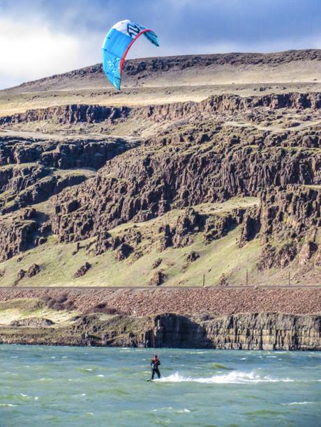 Yeah, I dropped in close enough to shore for Ken to tell me the board was gone down the river, and to not bother chasing after it. Wind was really steady, so I cruised up anyways, got to the Wall, did one last reach, turned around, and there she was. Wind got a little light, so I had two choices... stash the board and kite back, or just self-land and walk back. Since I was on one of those little narrow islands, I thought it would just be simpler to hike everything back to the Rufus launch. No problems... I just didn't want to deflate my kite in case I needed it to cross any deep spots. Its a slow, but very doable walk along the shoreline on the Oregon side, though the last gap from island to Rufus launch was the deepest, and it was nice to have John come out and help get the gear across. Very strong current between all of the gaps as one would expect. Was more than happy to take one for the team and get the board back. Worked out anyways, as the post-board rescue 10m session was short but sweet!