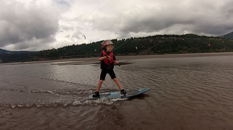 Henry's 5 years, 10 months. For skimming in fairly steady 13-18 mph-ish and and 2"-4" water with sandy flat bottom and 100 yard downwind stretch, with lots of land trainer kite time, and some practice rope skimming, everything came together. I'd never consider anything beyond this though, i.e. harness and connected to kite. The biggest surprise for me was his kite control and fine motor skill. He's not a kid that gets everything, i.e. not physical superstar, but has a lot of confidence (which is funny to listen-to as he's determined to "smack the lip") In terms of father-son sports activity, man... I don't know if I've experienced anything sweeter.