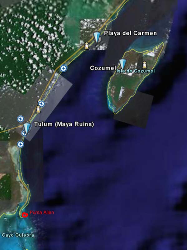 Tulum is just over an hour south of Cancun, Punta Allen is another hour or hour and half down the road.