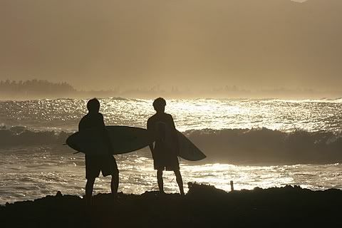 I paddled out at the second spot (the sunset pics), it was a little bigger when I was there, and I got royally messed up. Man you don;t really see the currents, but they are truly nasty. It's funny though the waves on the North shore is REALLY hardcore. There is so much more power in them than the average South Shore wave, that it cannot be compared 1:1.