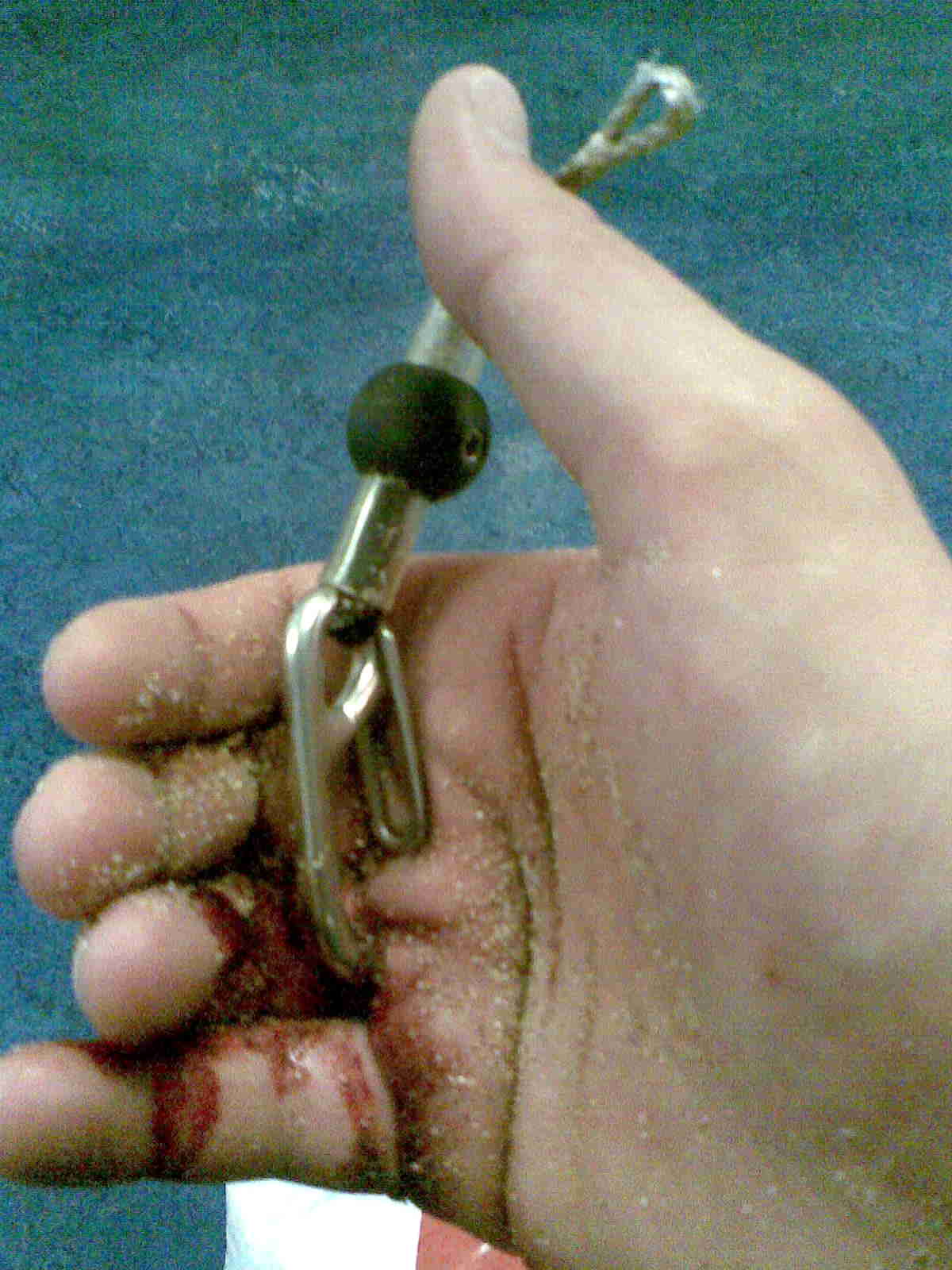 | It's a leash end (clip) hooked through a guy's hand...