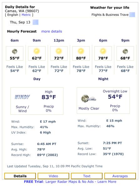 Weather.com for Camas on Thursday... If Camas is E17 then Rooster will be Of course Airnet and Ikitesurf aren't calling for it. Which way will it go?