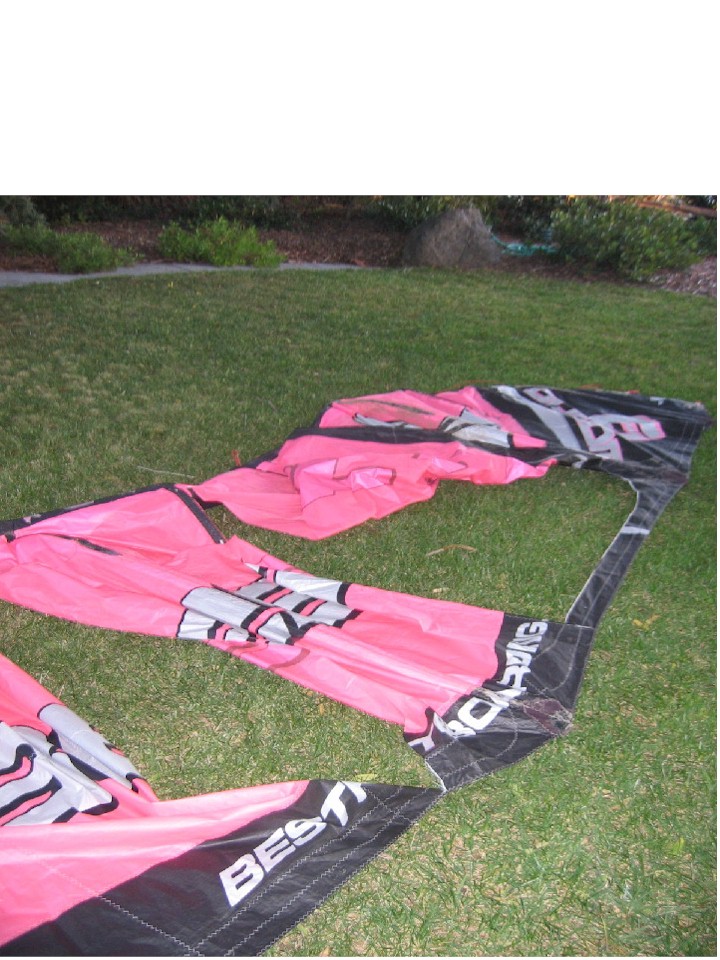 Just about a year old and with 50 sessions on it my favorite kite; a Waroo 9M blew apart today.