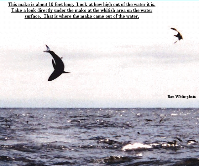 A friend of mine is commerical fisherman in FL and is always on my case when I go kayak fishing a mile or so out. He tells me he has seen big Makos hit a 500lb Marlin from below - biting off the Marlins tail and lifting it into the air