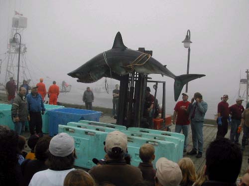 | Damn, that's a Mako??? I didn't know they got to be that size. I could've swarn it was a Great White. Those guys that caught it have some balls. I would not wanna be the one to slit it's throat as it's pulling a boat around.