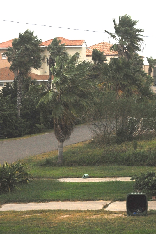 Wind 30 mph gusting to 37. Waves 9.5 feet and building. Got up and everything outside was blown over. Check out the garbage can.