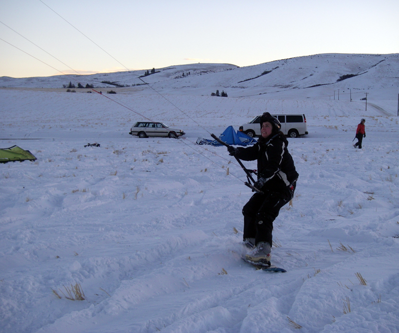 this report was from yesterday. waterville is about 30 minutes north of wenatchee, wa. along hwy us 2. easy access snowkite, doesn't get much easier than this for rigging next to your car. just as close to the launch area as in stevenson. a much better launch though.