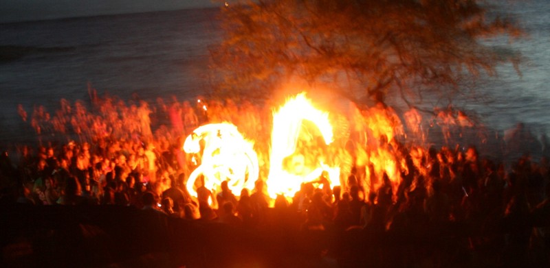 Well ok…so the fire is from a bunch of hippies tripping and tribal dancing at Little Beach and we’re scheduled to go home anyway.