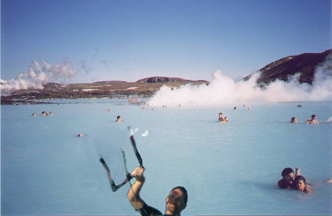 I watched a show on Iceland's geothermal once - they have big geothermal powerplants & they dump the water into man-made lakes which are consequently heated at a balmy 104 degrees F! - bet that'd be fun to hit! Like kiting a fricken hot tub!