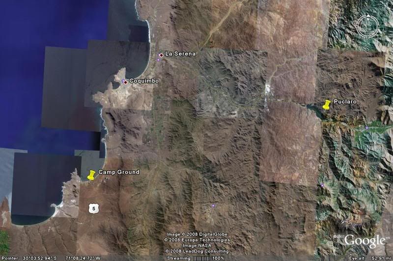 I was sad to miss out on the waves. One of my friends was just past tacking upwind so Waves were out of the question, besides the fact that the good spots were 8 hours south of us. Hopefully my next trip down will include some spots like Matanzas and Pichilemu (3 hours south of Santiago). We camped out in a small fishing village just south of La Serena (5 hours north of Santiago). The camp ground was seated directly on the beach. The spot we sessioned most was Puclaro, its a small resivoir about 45 min inland. Very similar setup to the gorge with fog in the morning on the coast and hot arid desert inland, and mountain ranges to the north and south. We got lucky on our trip back to Santiago with some gusty winds at a spot call Pichidangui, an amazing looking bay with solid overhead surf. Unfortunatly there was no video shot due to the 1/2 mile walk down wind to the launch spot.