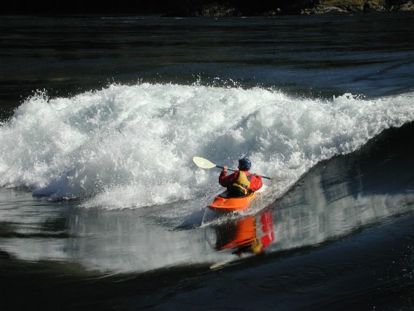 Got 37 minutes on this wave (in my squirt boat) - my arms were dead hams - then got to carry the boat a mile and half back through the woods - fun spot in BC
