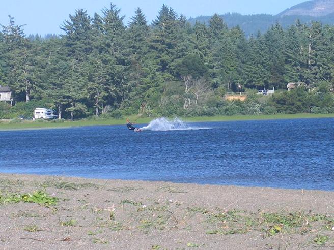 I was so tired on the 3rd day of riding that i fell asleep at lunch. I had left my kite and board on the beach. My friends were using the board and then put it on the kite when they left for lunch. Anyway tried and groggy i headed out for an afternoon sesh. and my kite was gone. Board was there. So i launched my friends TD and head out on a down winder to scout for it. I didn't have to go anyfarther than Will's b/c there it was on the grass. THANKS WILL FOR SAVING MY EVERYDAY 11 KITE!!!!!!!!!!!!!! It got blown down the lake and will rescued it on his jet ski.