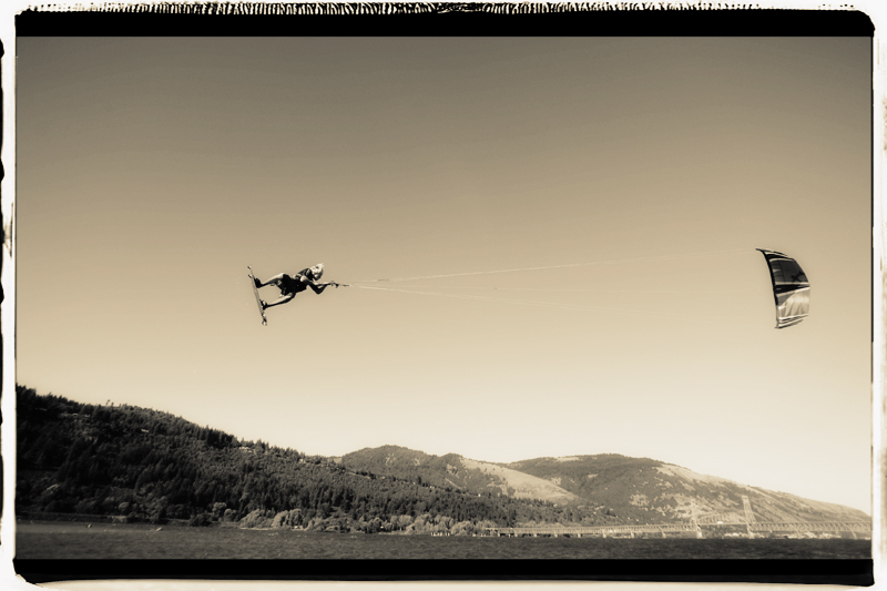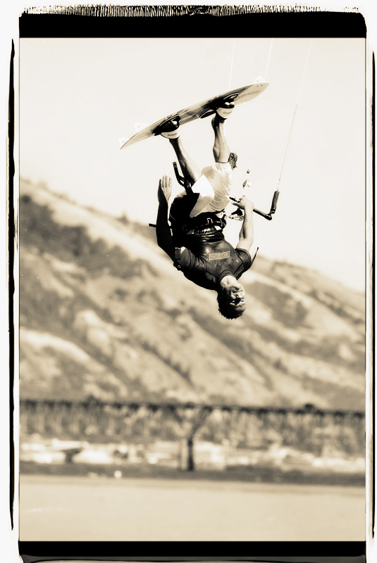 Eddy Hall..attacking the Gorge on a hell wind day on his 5..