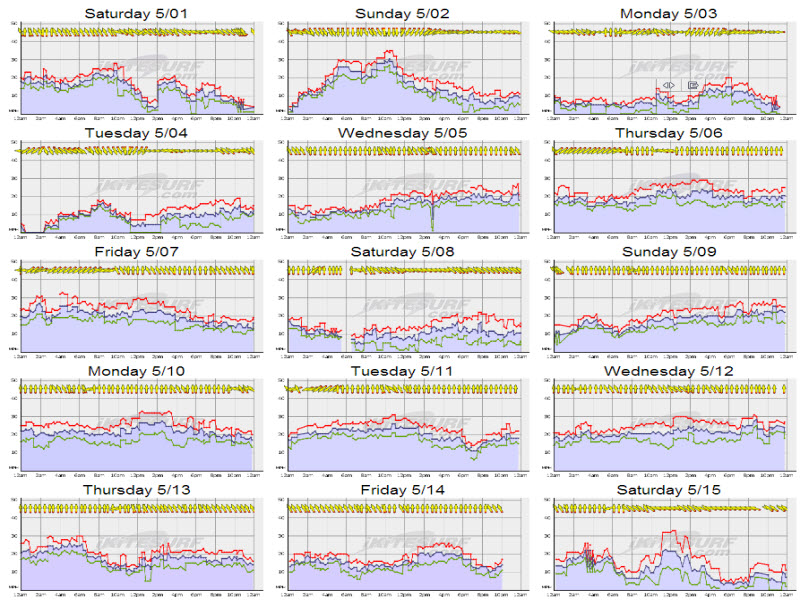 Last year was an off year but I didn't remember the wind being that bad and I'm pretty sure I was out riding quite a bit in May so I went and looked up the wind history. Pic below shows the first 15 days of May. Only 4 days that weren't really kiteable.