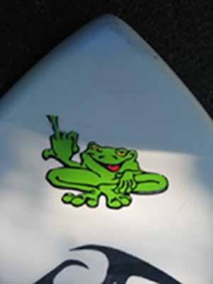 Tonight I just handed gman's smurfboard up to him, while he was standing on the rail of his rig to put it in his top-carrier. With one hand, I handed the 165 up and then the wind blew it out of my hand before he could grab it and fell 8 feet to the rocks-