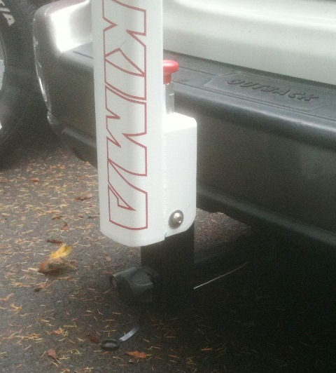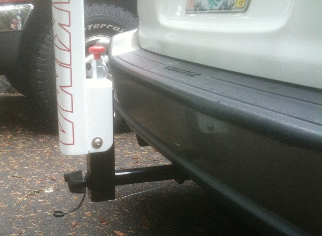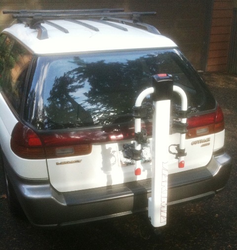 After I rigged the release mechanism on a string from the top of the rack you don't even have to bend down to release it and get in back of car. PM me for details.
