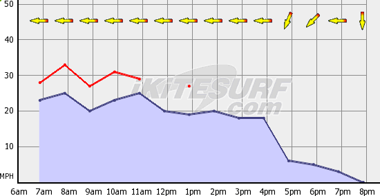 It was hella windy around 12:00. I would say consistantly around 26-28 with lots of poopy gusts in the low 30's. Thank god for bow kites Smile