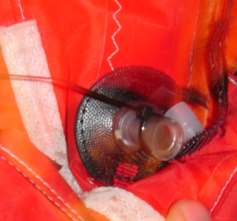 I found myself a the beach with a leaking stretched leading edge nipple this weekend and found a quick a clean solution, a zip tie.