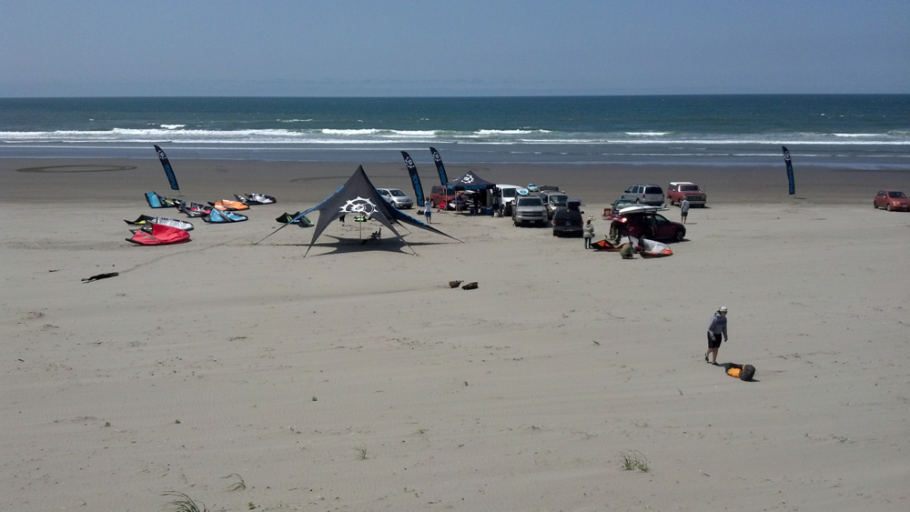 Drive north on 101 through Gearhart and look for the Del Rey Beach signs about 1/4 mile past town. Drive on the beach and look for the setup. (If you don't want to drive on the beach Del Rey has a nice parking lot and you can walk from there.