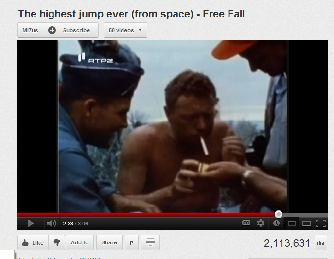 | it was pretty cool to listen to. Very controlled breathing at the start. approaches 700 mph and the rate increases. Watch him tumble for a while which made me sick and hear no increased breathing rate led me to believe he might have taken a night night for a second and then he is back in control talking a bit. Truely funny when he dropped the f bomb asking for smoke so he could see the wind coming from the east. pretty dam cool if you ask me. I am ready to go tandem with my kid and add wings so we can fly for a minute.