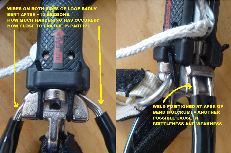 Their leash clip has been weak for years and the new Comp Bar chicken loop clip I bet is the #1 restocked item for Windance since I've bought 2 just this year to the tune of $20 per. I like the bar feel and push away safety but agree you should definitely check your SS metal for fatigue as one side one of the clips will get a small crack in it. The kites and lines are bomb proof and yes the chicken loop takes some abuse dragging my fat ass around the river but those two metal clips should be beefed up....or redesigned completely.