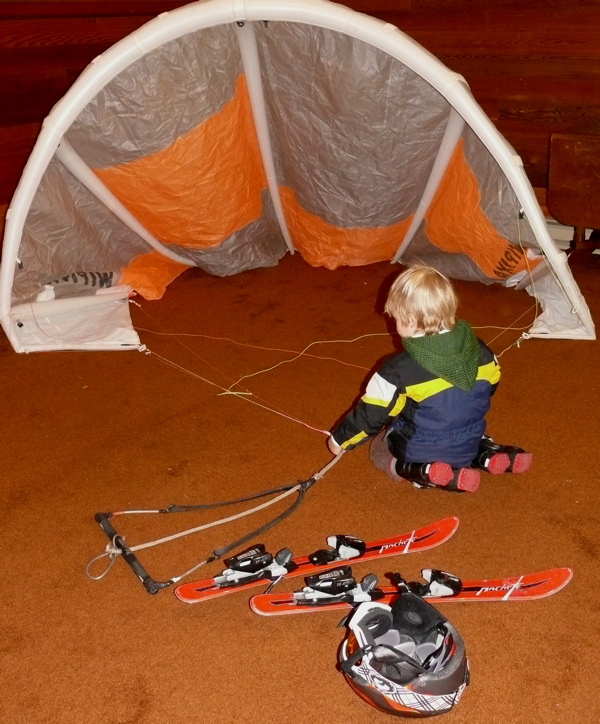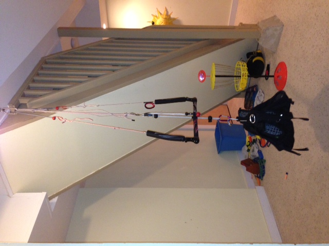 Who can share a pic of their basement kite bar suspended from the ceiling? ...It's definitely basement kiting season here in the gorge. Here's a 4 year old with a grand daddy of a 14 year old today.