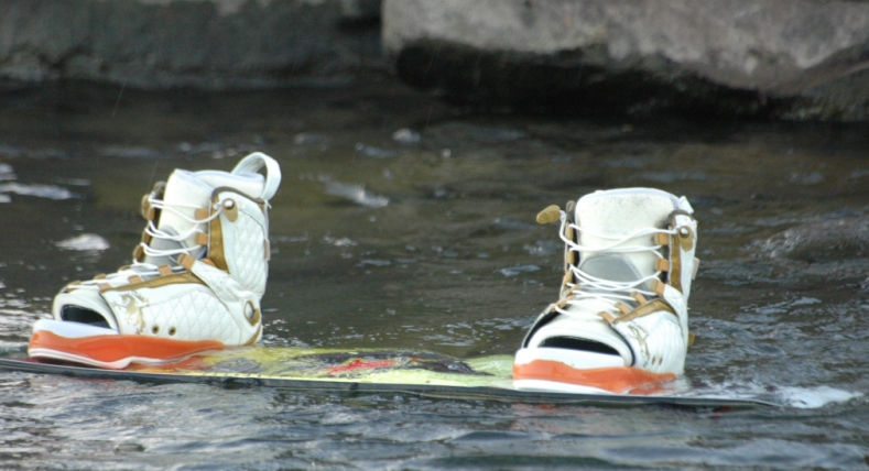 Taylor was 11. He has never snowboarded. He has played with a kneeboard behind the boat.