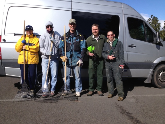 Pete Wright, Bill Payne, Walter Menge, Vicki Roberts, John Boyels, Jim Skakel and Park Rangers Mike Clough, Jo Ann Sparks and Debbie Mazzrillo who all showed up to the CGKA work party at Rowena yesterday. In preparation for the 2013 season park lawns were mowed, raked and seeded, weeds were whacked and several launch improvements were made.