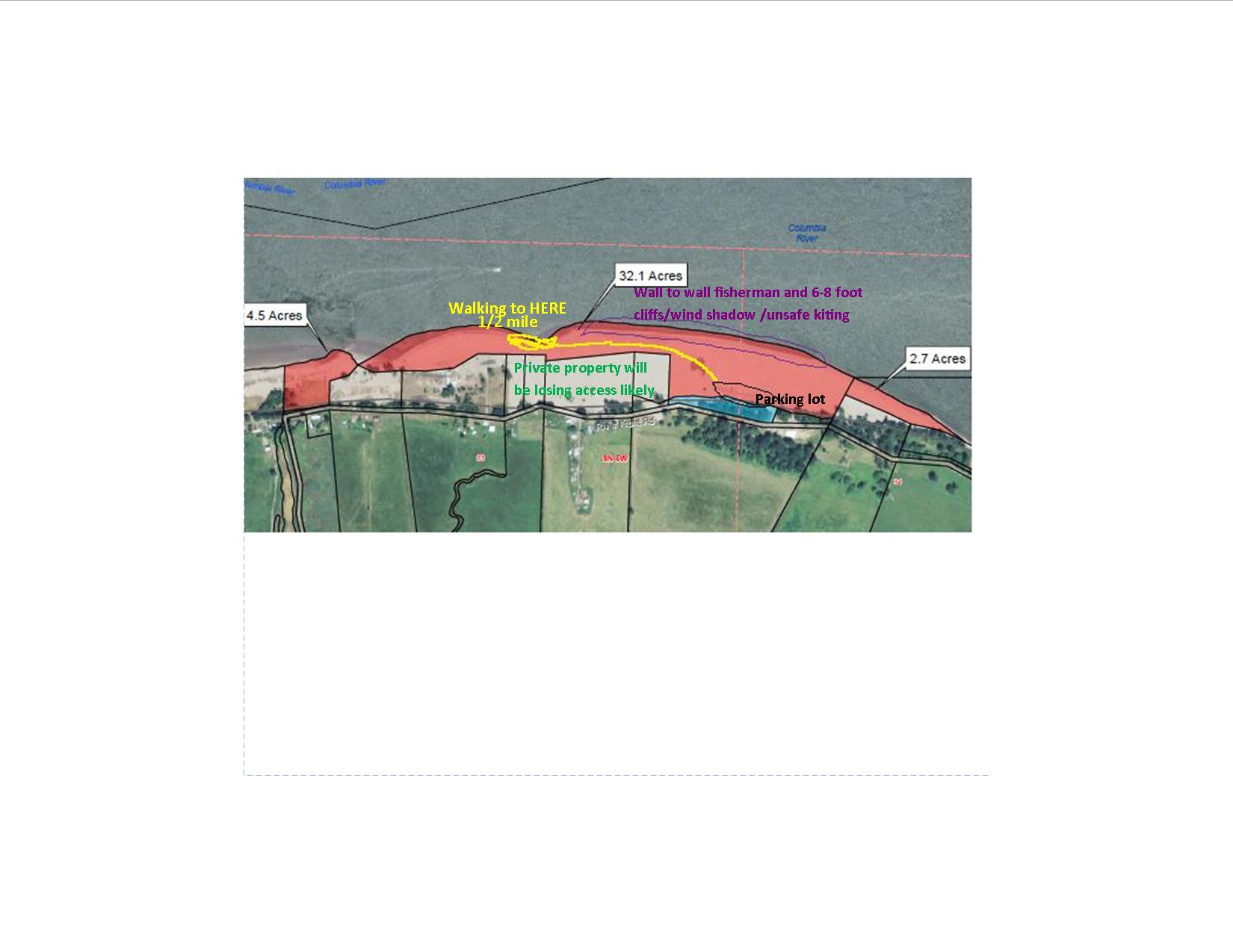 #1. Based on that map you put up I've unknowingly been parking on private property all these years. I didn't know - and I'm sure all the other people parking around me didn't know either. If this is private property and they want us off of it - then we will have to put up signs and self police. If we don't put up signs kiters will continue to park their (simply because they don't know the property lines).