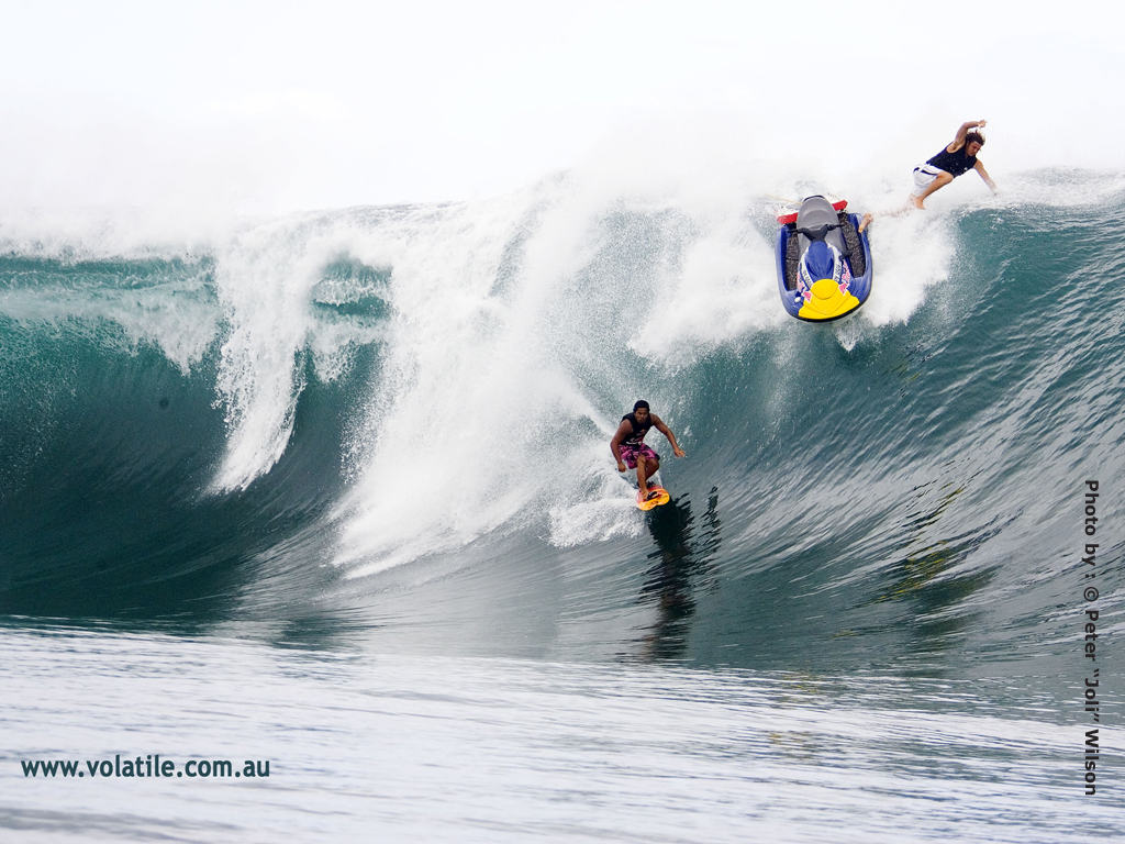 After watching the full version video, it is pretty obvious the Tahitians take all the crazyiness in stride. Had that incident happened at one of the heavy spots in Hawaii like Pipe or Sunset, then there would have been a severe beatdown accompanied with the dropped kite in the lineup.