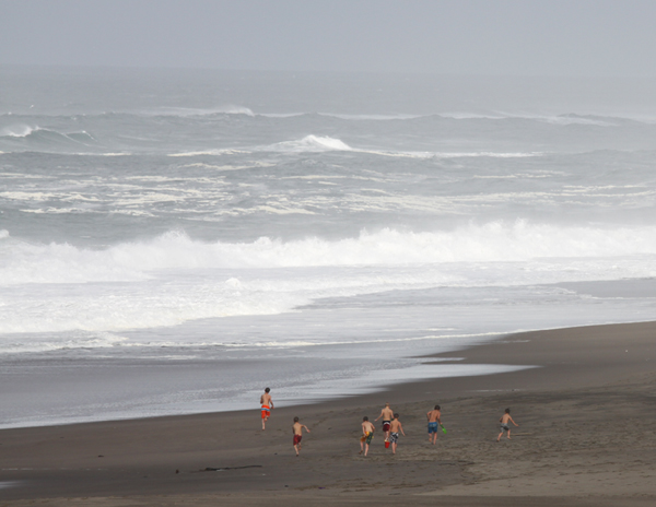 sun pops out - kids in suits enjoying the weather - some body boarders manning up for some turbulence at Roads End -wind starts to come back - promising