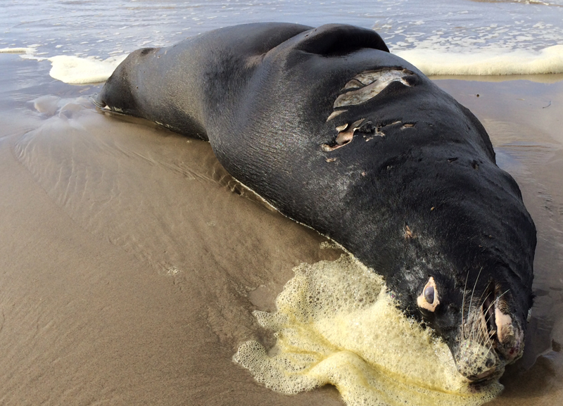 Keep driving north, now back to a kiting mission - Pacific City waves junk wind not quite there - improving. Head to Tierra del mar just north - still light - walk down the beach - looks like a whale getting rolled in the surf - swell is reading 16' - the waves drain for a moment - so i run over and take a closer look at the really big sealion friend - he has had a bad day...