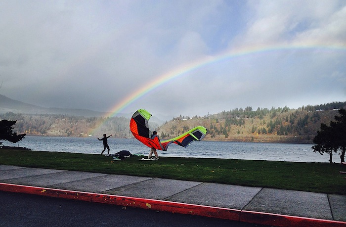 I was pretty powered up on my 10m park. I think ron was on his 10m too. real strange wind very punchy with plenty of lulls. it was so cool driving east on 84 I watched the rainbow develop around viento and it was moving east following me along the road. that was pretty amazing to watch