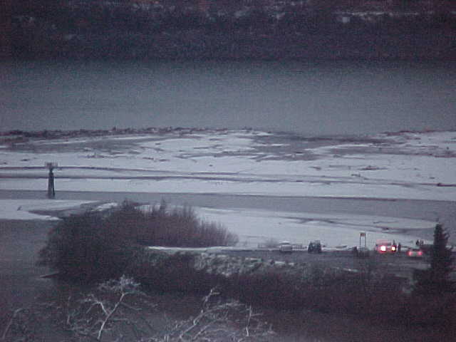 By contrast, here's what the HR sandbar looks like right now...snow covered and collecting vehicles...some dude apparently just drove over the edge. A wrecker is currently pullin' him out of the sand: