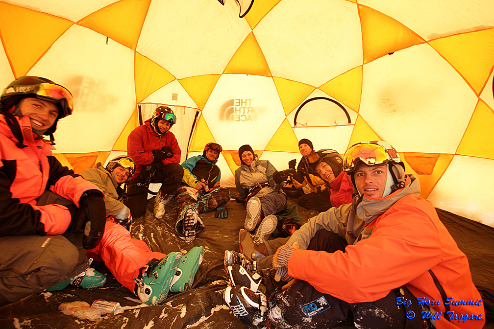The northern Big Horns have been a snowkite destination for a handful of Wyoming and Montana locals since 2006. Each year we have push the limits of snowkiting in the Big Horn range. Each year we have come away enchanted by the diversity and immense magnitude of these mountains. In the lower 48 states, the Big Horns are one of our finest locations. Once the idea was hatched, it took only two days for the reservations to exceed the lodge’s capacity. With that news, some kiters said, “No problem, we’ll camp out!” Snowkiters are a hearty group, without a doubt.