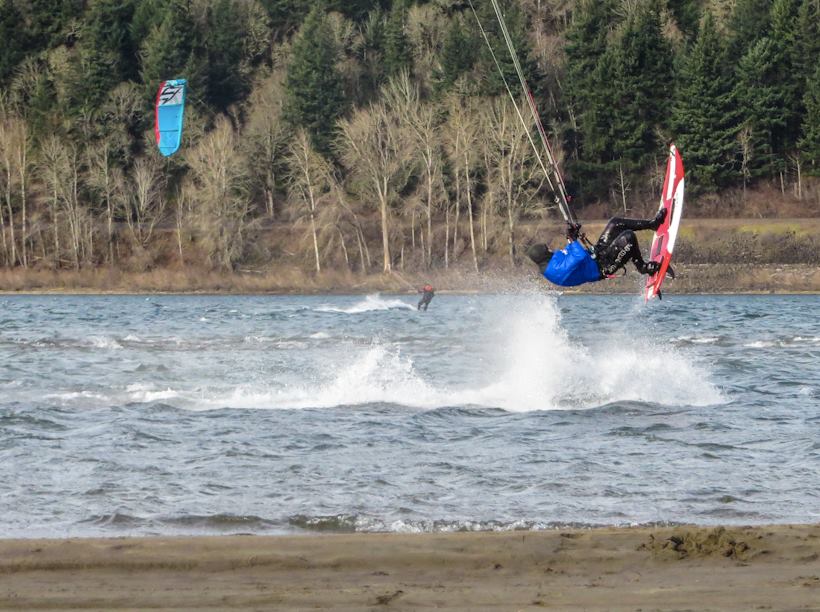 What better way to spend New Years Day than with good friends, sunny skies and nice wind at Rooster Rock! We counted at least eight hearty souls gettin the goods today... Tracy didn't get pics of everyone; Ron & and one other 2nd shifter missed the camera shoot... btw, drysuit is amazing... was not the least bit cold today!