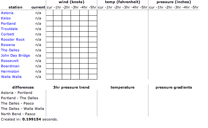 I've been getting the following when checking the wind sensors for the last few days, no readings anywhere? Anybody know what's happening? In the past, there's been missing data on certain rows but never on all of them.