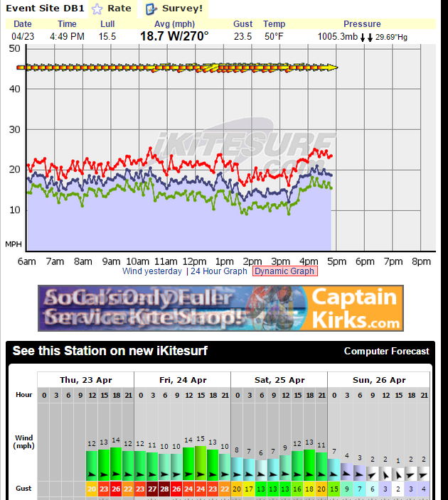 2) Computer forcasts placed Dougs beach as very good kiting today.