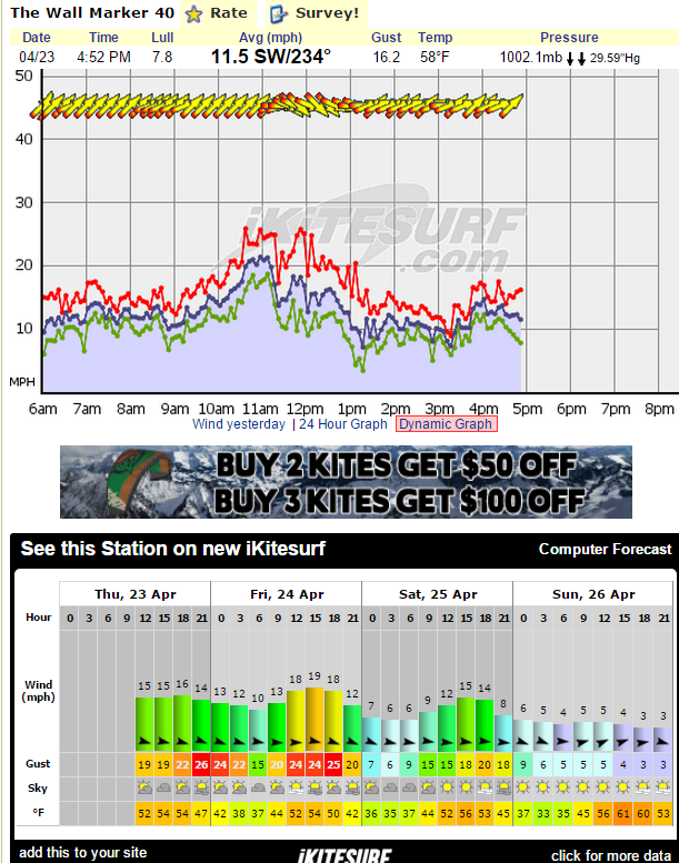 Of course the real problem is forecasting this ahead of time. Nailing a forecast of when this wave moves through and how much it affect the wind at a given sight would be difficult. All I could say with any confidence is that when the weather maps show a short wave moving through the region, it will be up and down.