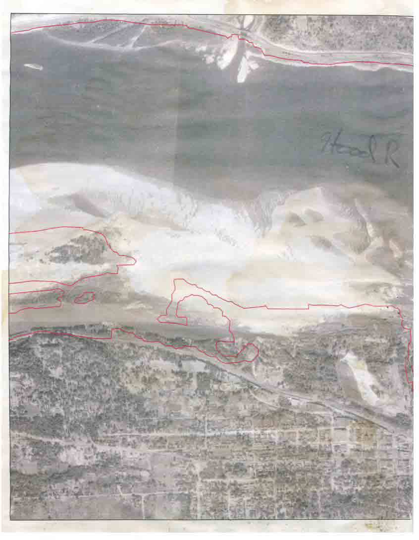 the red line shows the current soreline including wells and the hook