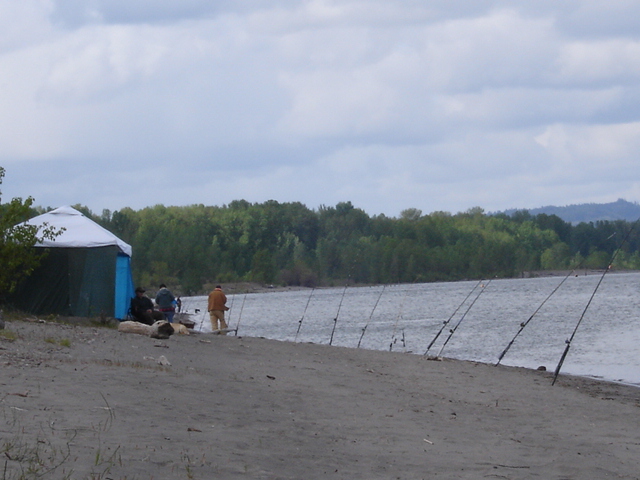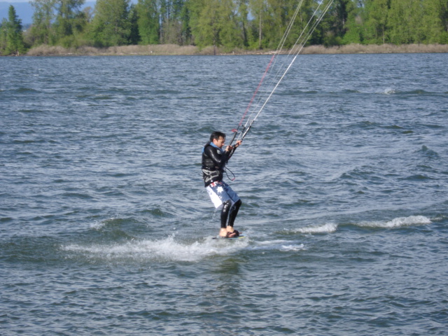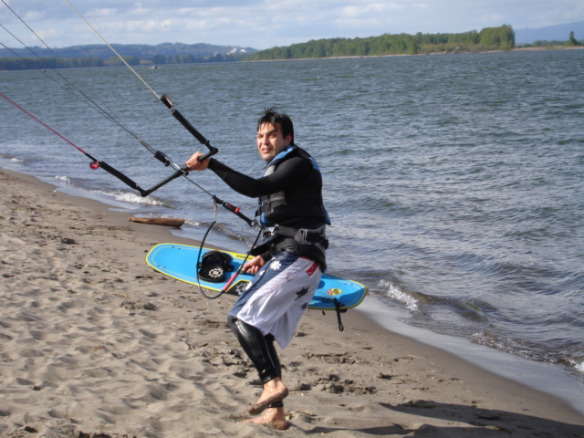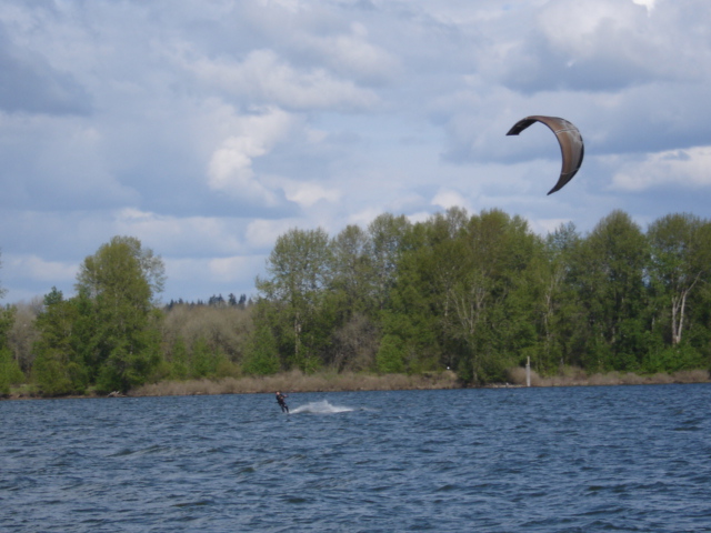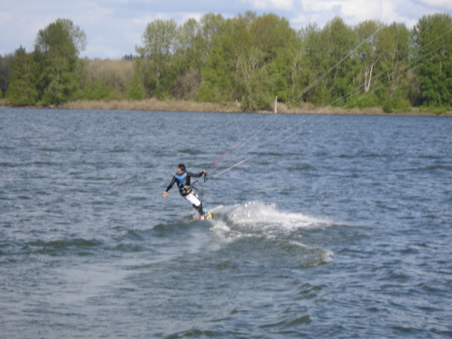 It wasn't much but Ceasar and myself, were able to bust out a good 45 minute session in the water @ Sauvies this afternoon....Over all, a pretty light day....But when ever the Zar and myself get together, the winds gods generally send us a puff or two....so for about a good hour, the winds were solid - give or take 15 mph with a few white caps....It was crazy but strong enough to ride on the machine 17.5....no slug fest....we made damn sure we were able to ride up wind - otherwise the fisherman would have our heads...no shit - We were definetly out numbered...Something like 50 fishermen and 2 of us...