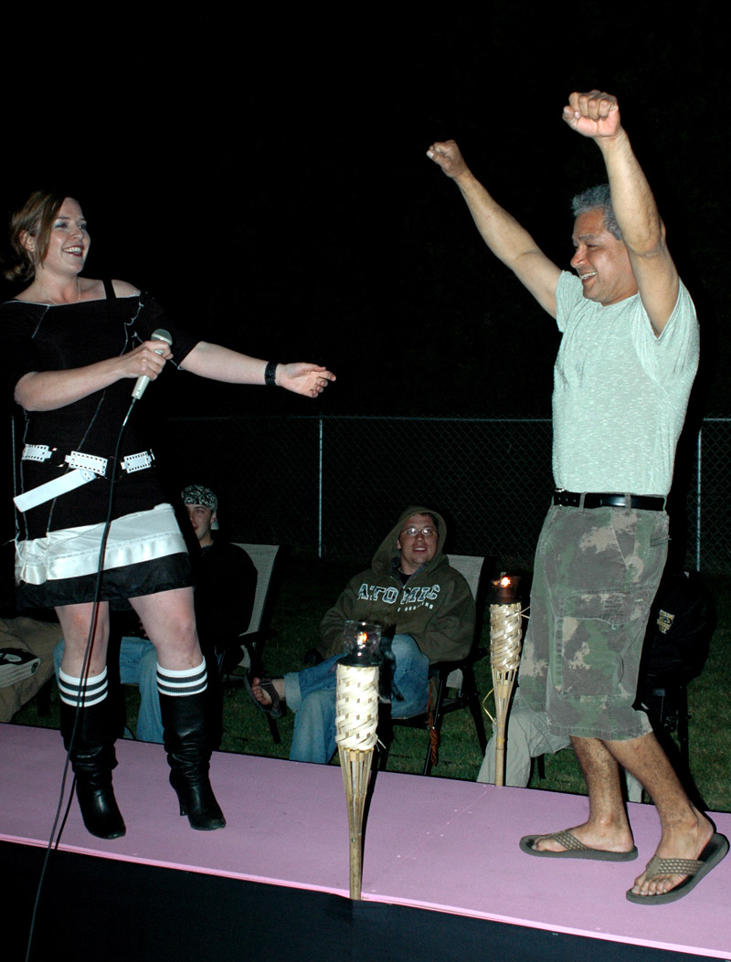 The man was in fine form on the mike, as well as the ladies on the runway. The elusive two liner, Cooky, even made a runway appearance. Two kegs were drained of all liquid by 11:00 p.m.