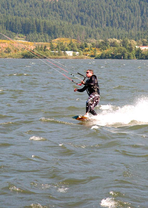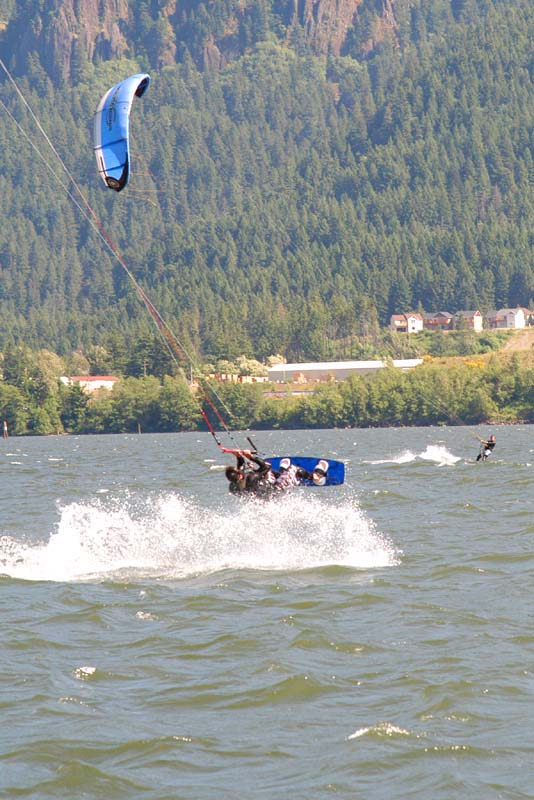 Feeling pressure to perform for the camera - Carl throws a back-roll kite-loop. Notice - lines aren't crossed. |