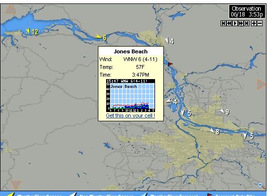iKS: "Jones Beach west 18-22 during the pm peak. Sauvies WNW 14-18. These winds only develop under strong PM sun, if too many clouds then these winds wait til TUE."