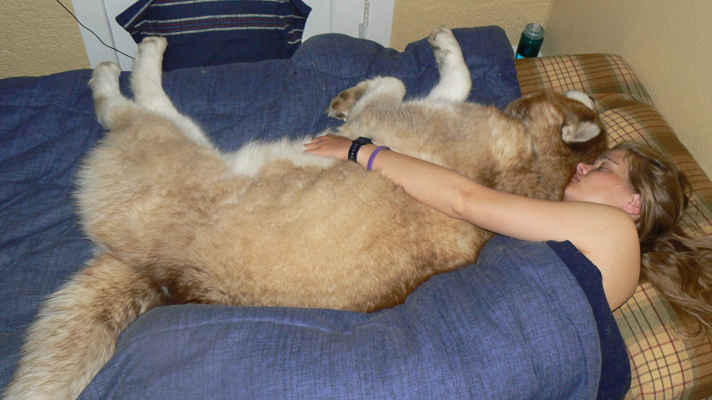 | Loki wrote: | | Woof woof woof sometimes i let the woman sleep on the bed woof |