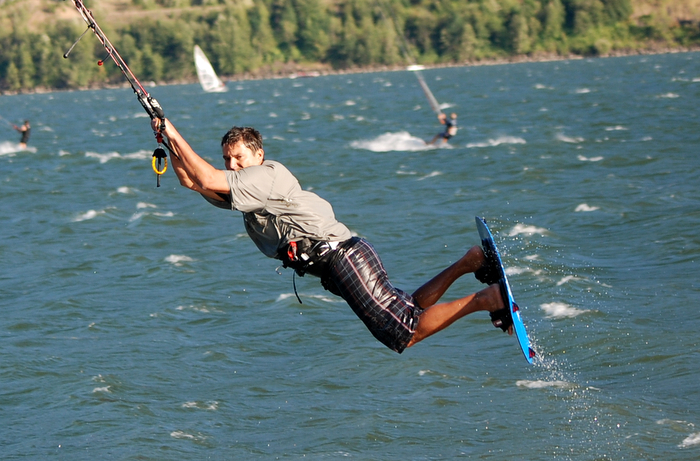 BTW, he's only been out kitesurfing about 3-4 times and he's already pulling off big backside 360's. You'll probably see him around a lot next season.