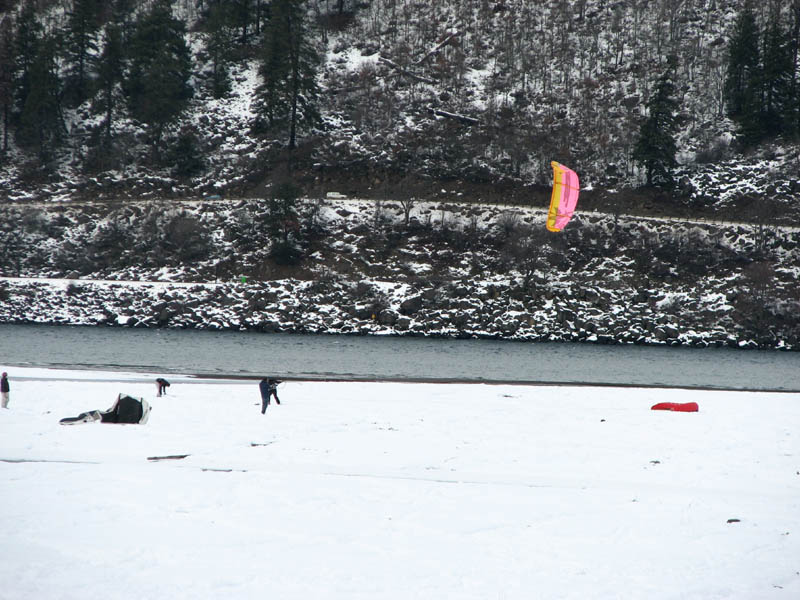 Missed the wind at the snowbar - some shots right before it turned off - the Dogs had fun. Did see Tucker and Adam get a kite launched just before a snow squall blew in